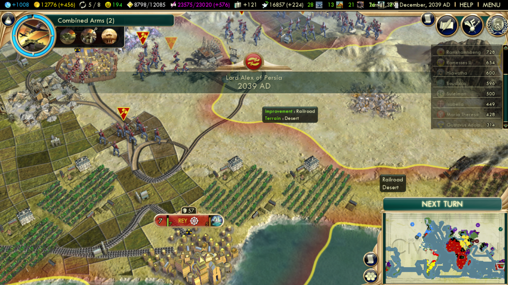 I also learned that I can play Sid Meier’s Civilization V, the fifth entry in the series of world history sims that began with the original game published in 1991 by MicroProse, which Sid Meier co-founded in 1982, when I was still in high school and half-a-decade before I got my first home computer.