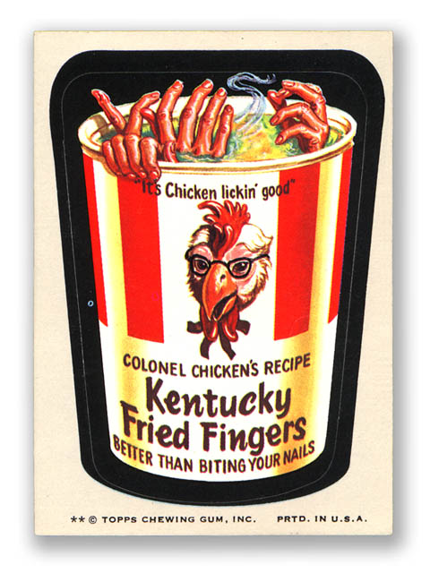 If you were a kid growing up in the early to mid-1970s, you probably remember Topps’s Wacky Packages stickers, which were parodies of American consumer products and their packaging (hence the name “Wacky Packages”). More than likely, if you were around 10 years old in 1973 when Topps – known for its Bazooka Chewing Gum and various trading card lines, including baseball, pro football, and pop culture-themed collectible cards – published Wackys, you probably collected such twisted, even ghoulish stickers as “Crust Toothpaste,” “Kentucky Fried Fingers,” “Mountain Goo,” “Fearasil Complexion Cream,” and “Shrunken Donuts.” (And if by chance you didn’t collect “Wackys,” you probably knew someone in school or the street where you lived who did.)