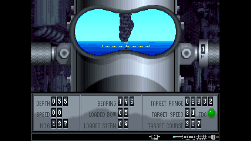 The game manual listed several different sources, including Clay Blair, Jr.’s Silent Victory: The U.S. Submarine War Against Japan, for Silent Service’s historical background and the technical/tactical principles used by Meier and the various platform-specific teams in designing and programming the simulation, and even allowing for the rudimentary graphics and other limitations (you could, for instance, fire only four torpedoes or cannon shells within x amount of minutes because the processors of the time could not cope with all the internal calculations involved in the game’s internal workings. There wasn’t much of a color palette in Silent Service, just a mix of green, pink, black, and white to represent the ocean, the sky, ships, the interior of the sub and its gauges, and the tactical/strategic maps. Still, for the modest-performance – compared to today’s computers – PCs of the day, Silent Service was one of the best sub simulations available, and it sold enough copies (and earned enough good reviews) that MicroProse decided to design and release a sequel for the more powerful PCs of 1990.