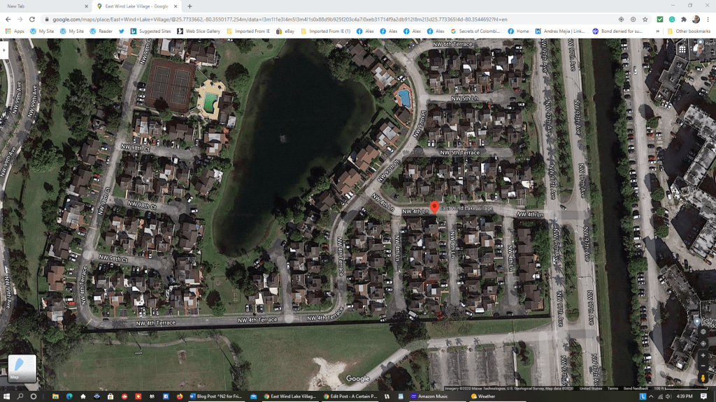 Before 2010, I sometimes took long walks around what we in East Wind Lake Village used to call the Big Block around the man-made body of water from which that gated community near Doral derives its name. It’s really a “block” on the eastern shore of the lake, which is adjacent to NW 97th Place. The western side of the block is actually a series of blocks that form the rest of the perimeter around the lake, the outermost houses at the end of each block being adjacent to NW 98th Court.
