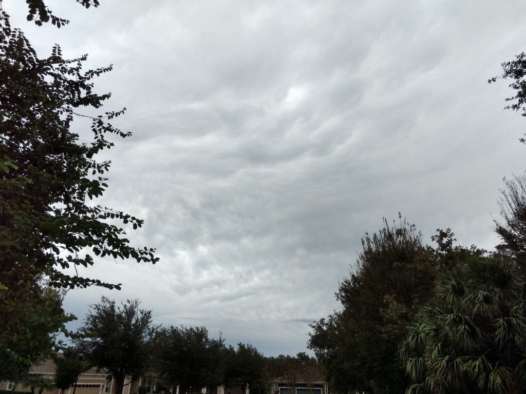 Hello again, Dear Reader. It’s now early evening here in New Hometown, Florida. It’s definitely going to be a rainy night; right now the temperature is 72˚F (22˚C) under mostly cloudy skies. With humidity at 91% and the wind blowing from (almost) due north at 7 MPH (12 KM/H), the feels-like temperature is also 72˚F (22˚C). As noted above, the forecast for the night calls for rain showers and a low of 72˚F (22˚C).