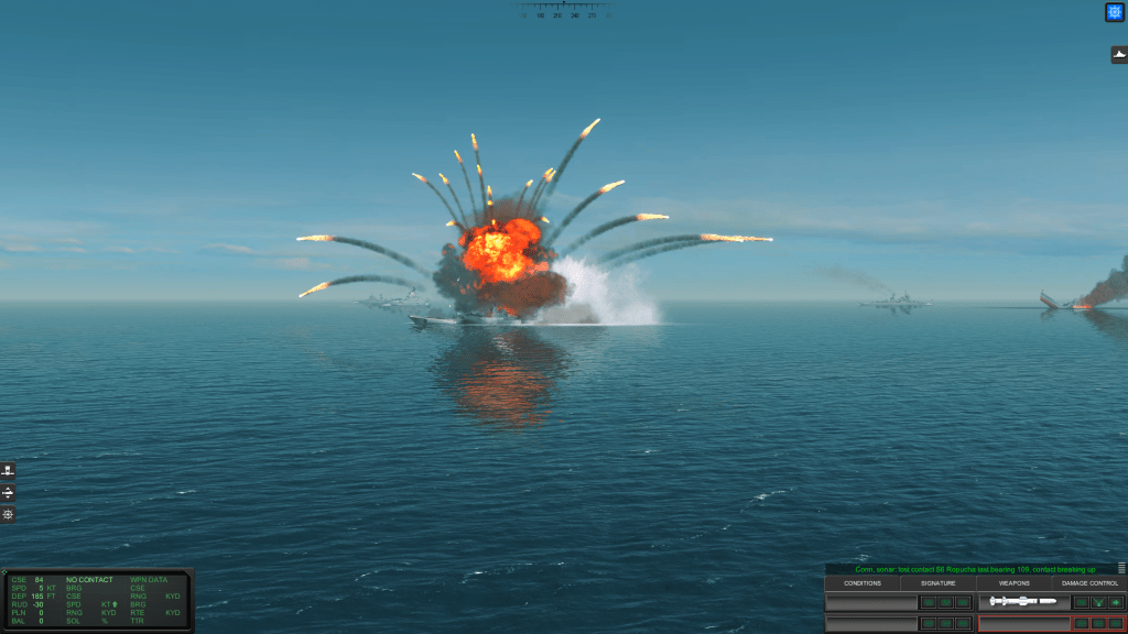 If I had taken the time to take detailed notes, I might have been able to reconstruct the events more accurately. I did that a few times in the late 1980s when I played a game called “Crusade in Europe”; I’d mark the progress of my units on a map and create a detailed “after action report.” I could do that because the game had a pause function, plus a flashback mode that let you see what happened in previous turns. “Cold Waters” doesn’t have those functions, so…..