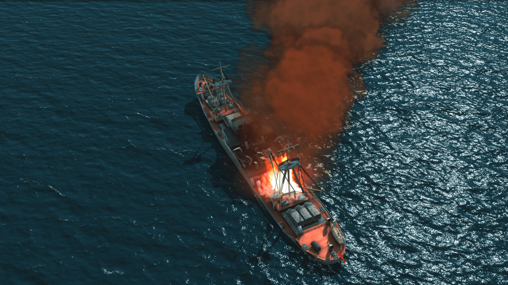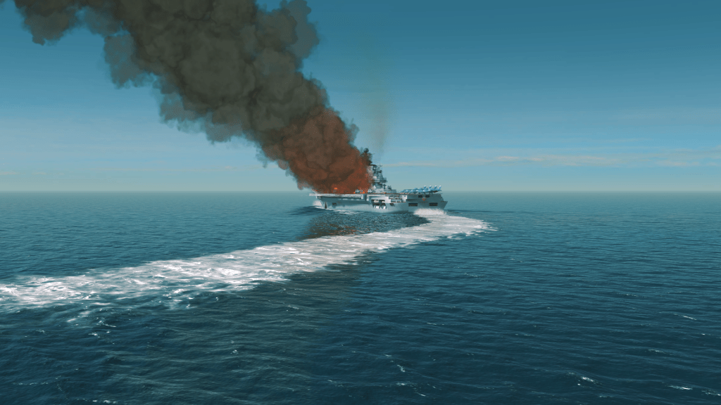 With the task force’s capital ships either sunk or damaged beyond repair, destroying the amphibious force’s landing ships was now an easy task. With no missile-armed escorts to protect the Ropuchas and Alligators, Rickover used a mix of Harpoons and Mk.48 torpedoes to destroy the Russian landing ships and their cargo of tanks, BMP infantry fighting vehicles, and a regiment of infantry.