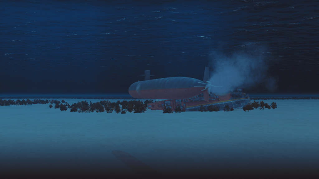 The only enemy participant that did any damage to Rickover was the IL-38 May ASW patrol aircraft orbiting overhead. It dropped a stick of depth bombs close to the American sub, which suffered some damage to the hull but was otherwise unharmed. The May, the Soviets’ counterpart to the U.S. Navy’s Lockheed P-3C Orion, dropped sonobuoys and an aerial torpedo in an effort to spook the evasive American boat, but to no avail. When its weapons stores were exhausted, all that the May could do was to radio Soviet naval headquarters to report on the disaster which had befallen the task force and search for possible survivors from the sunken warships and transports.