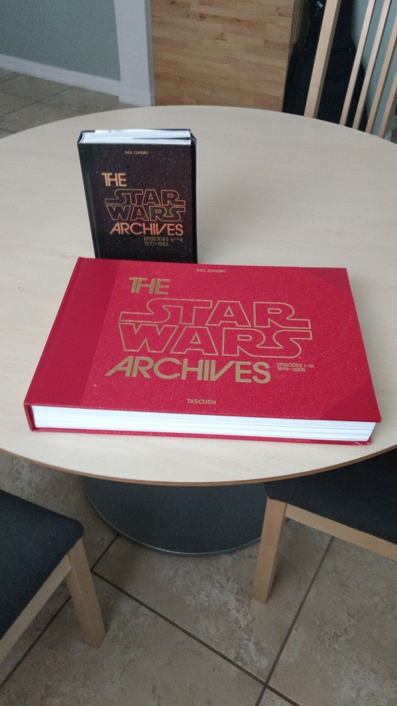 I took a few photos of my two volumes of The Star Wars Archives together; as you can see, the book that covers the Original Trilogy is dwarfed – considerably – by The Star Wars Archives: Episodes I-III, 1999-2005. As Wedge Antilles says about the first Death Star in Star Wars Episode IV: A New Hope, “Look at the size of that thing!”
