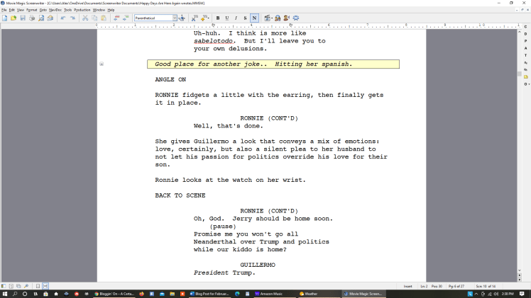 I’m going to take a short eye-rest break – maybe 15-20 minutes’ worth of not staring at a computer monitor – and then, it’s back to Movie Magic Screenwriter 6.0!