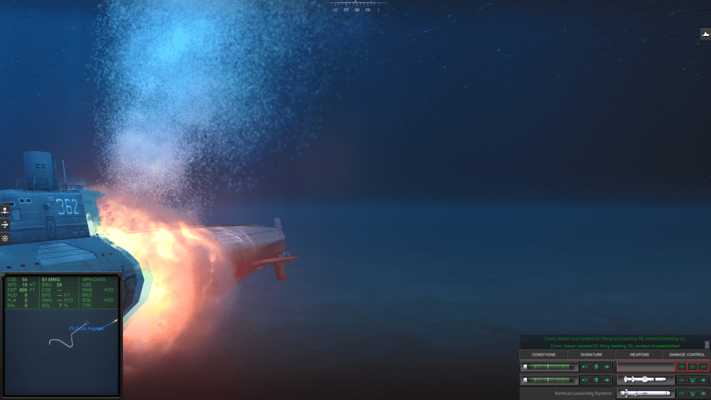 Luckily, the game decided that there was a U.S. Navy task force nearby, so after scuttling my boat in shallow water, my crew and I were rescued and I was given a fourth boat to command.