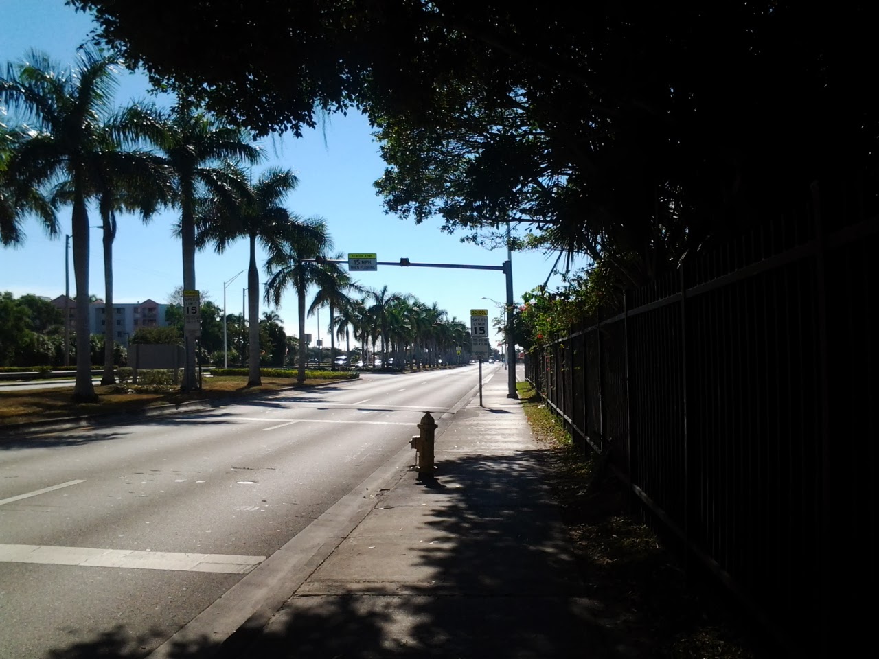 Northwest 97th Avenue, aka Ruben Dario Avenue, looking south. From 1978 to 2016, if I wanted to eat at a nearby restaurant or get groceries, I’d walk a third of a mile and cross the avenue at that crosswalk or the one beyond it.