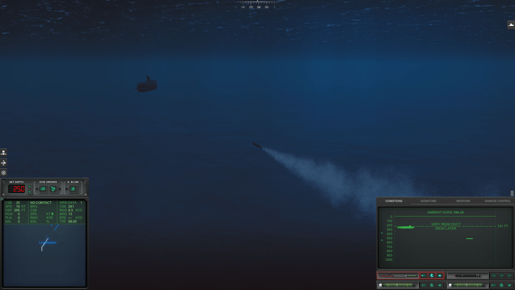 Of course, this didn’t necessarily mean that this sub was one of the boomer’s escorts. But it was there…it was less than 5,000 yards away…and it was firing torpedoes. So I retaliated.