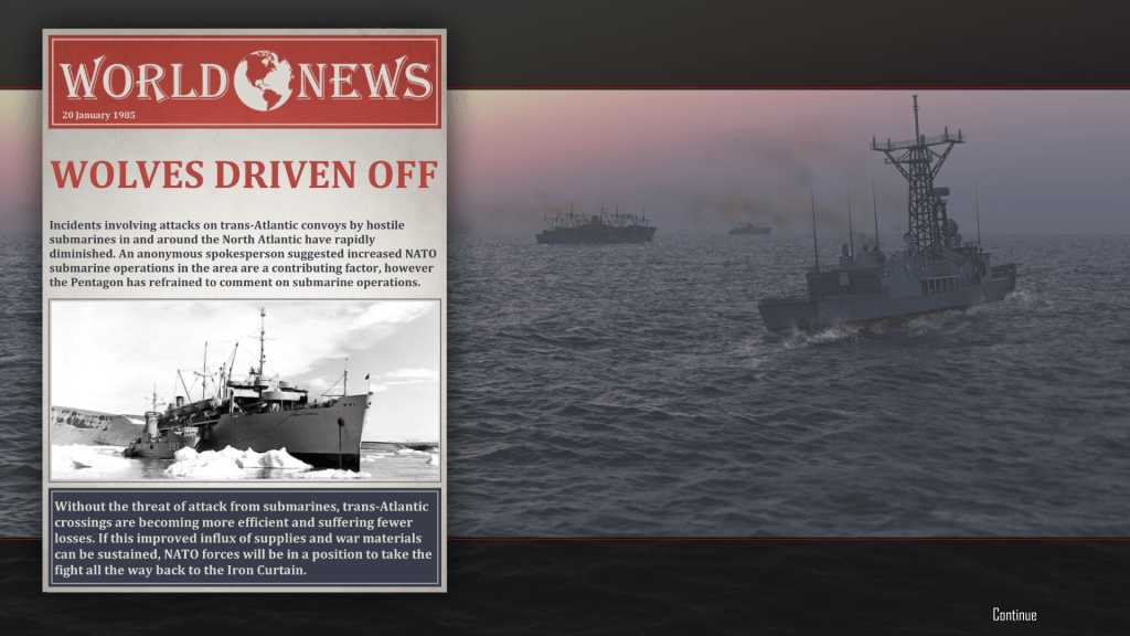 I liked both endings to North Atlantic 1984, but I prefer the second one. I didn’t lose Boat # 4, and I helped win the Third World War.