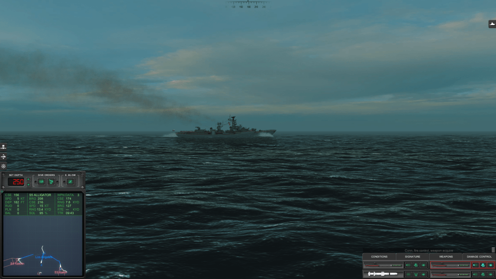 Another surprise: the game sent me to intercept an at-sea replenishment group that consisted of an Ugra-class submarine tender and several escorts operating in the Barents Sea. So, I headed out to sea with Baton Rouge and went in harm’s way.