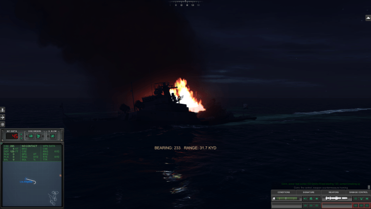 At first I thought TortugaPower was playing an early version of Cold Waters; some of the little details, such as the look of the Weapons Load tab, were subtly different from the version of the game that I own. Not radically different, mind you, but just enough that someone who plays Cold Waters often would notice. (Many game developers – especially those who are responsive to players’ comments on playability issues and “quality of life” details – tweak their products often, adding a new feature here or removing a clunky feature there.)