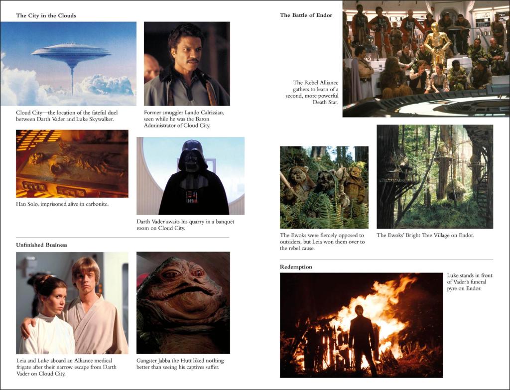 As I said earlier, this is a rare Dorling-Kindersley book that relies more on the written word than on illustrations and feels (and reads) like a real reference work written for older readers. As I mentioned earlier, Skywalker: A Family at War has two photo inserts, done in the same style as the ones youโ€™d find in a true-life history book, arranged in chronological order and without letting on that these are either stills from the films and Star Wars: The Clone Wars or publicity stills from the Original Trilogy.