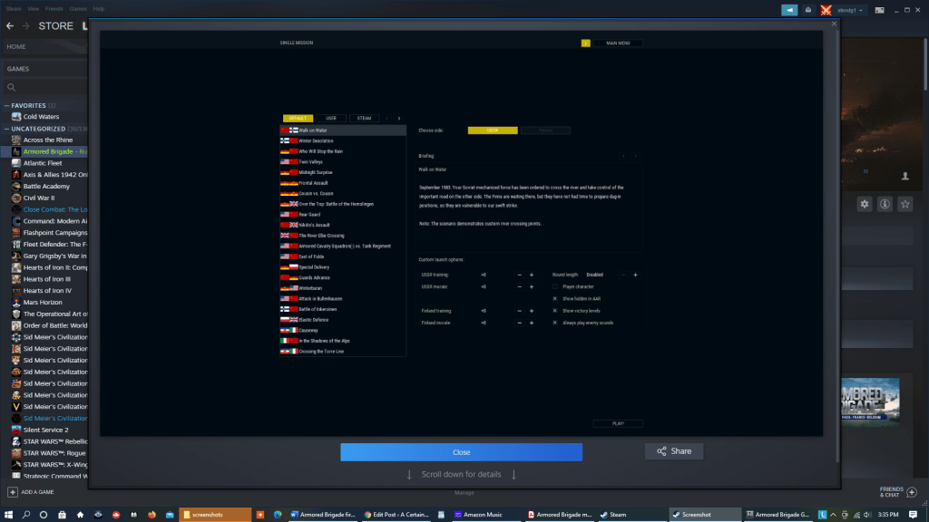 Veitikka Studios did a great job with the design of Armored Brigade (especially the sound and the enemy AI) and its balance between realism (units have a “lag” between the time they receive an order and the time they execute it, and this delay is determined by such factors as distance, line-of-sight, terrain, and enemy jamming of signals) and playability. I have even won some complicated engagements even though I’m still learning how to play Armored Brigade.