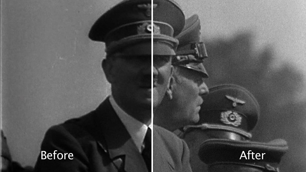 A before/after comparison of the standard definition image and the HD one in a single image from the documentary