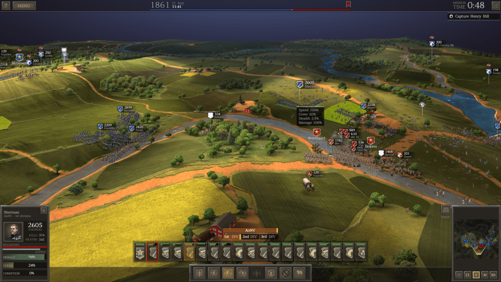 I usually watch The Historical Gamer (or THG) purely for entertainment only; he plays a lot of expensive, complicated games, and there are some (like Suzerain or Panzer General II) that I would never buy or play. However, watching his “Let’s Play” series about Strategic Command WWII: World at War, Cold Waters, and Armored Brigade influenced my decision to buy those games. And that was the case with Ultimate General: Civil War.