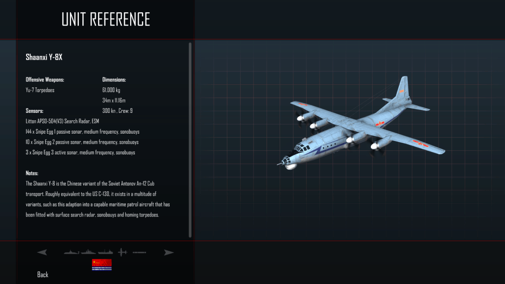A Y-8X Marine Patrol Aircraft. This screengrab is from the South China Sea campaign, but I include it here because it’s a dramatic shot. Note the burning Chinese ship in the distance.