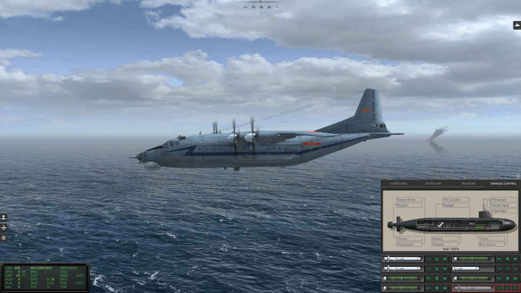 It’s always a good idea to use torpedoes first because not only can you steer them with the wire guidance, but they are usually stealthy and a weapons launch (known as a “transient”) is hard to detect by the escorts, especially if they are far away. In fact, I recommend the use of torpedoes only unless the troop and landing ships manage to make a run for it at flank speed while the PLAN warships, helicopters, and Y-8 patrol planes keep you busy dodging all sorts of nasties, including depth bombs, ASW rockets, and of course, torpedoes.
