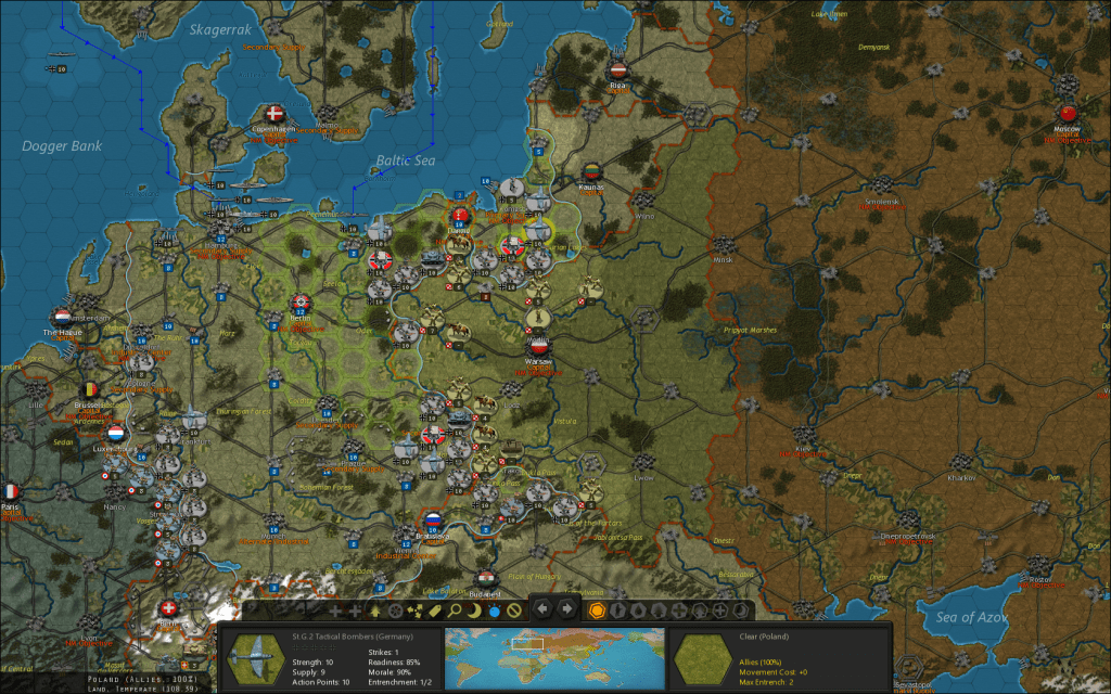 Of course, Crusade in Europe’s graphics are primitive-looking compared to modern war games. Terrain, unit symbols, and even the maps themselves are not as detailed as those in, say, Hearts of Iron IV or Strategic Command WWII: World at War. You don’t see, for instance, 3D renditions of Allied Sherman tanks duking it out with German Panzer Mk. IVs or the formidable Panther and Tiger tanks of the late war period, nor do you see P-47 Thunderbolts or Hawker Typhoons making strafing runs on hapless columns of German forces making their way to – or retreating desperately from – the battlefields of Normandy.