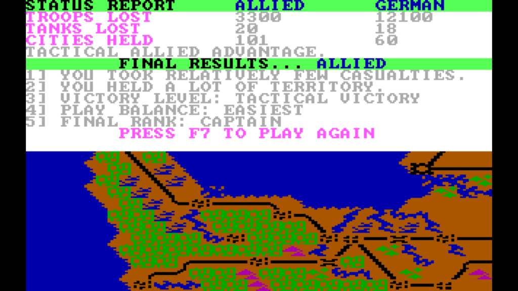 Nevertheless, once you accept that Crusade in Europe is (1) a strategy game that is the digital equivalent of an old-fashioned map board and unit-counters wargame and (2) that it was made in the mid-1980s, a time when even owning a computer was still a novelty, you will enjoy it.