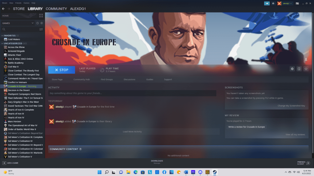 The original MicroProse closed its doors in the early 2000s after a series of mergers and buyouts, and although it released many games that I loved back in the day (including Red Storm Rising, Silent Service II, and M-1 Tank Platoon), it never did a revamped version of its Command Series games for the PCs of the 1990s and 2000s. And until recently, Crusade in Europe languished in the netherworld of “abandonware,” where it was available as a play-free-on-a-browser game but not available on a legitimate game distribution site like Steam.