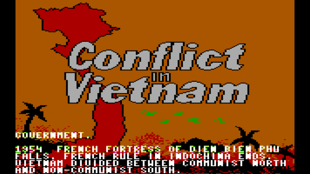 If you read my recent review of Crusade in Europe, you’ll recall that it was one of the three Command Series games published by the original iteration of MicroProse between 1985 and 1986. The other two titles, Decision in the Desert and Conflict in Vietnam, were conceived by Crusade’s designers Sid Meier and Ed Bever, and although they depict campaigns in other parts of the world and at different points in time, they have many of the same features, especially in graphic design and gameplay.