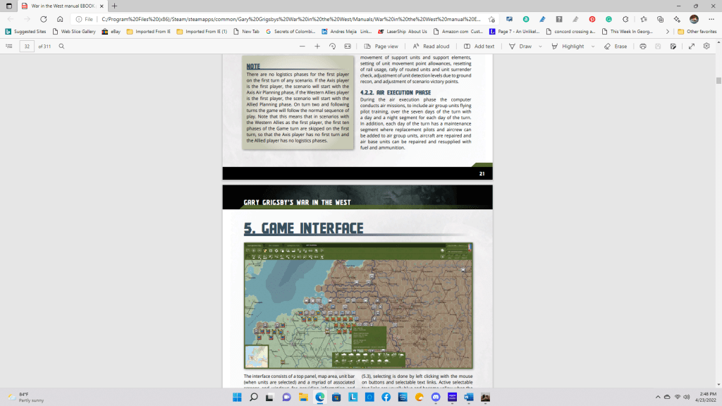 But where Crusade in Europe is what game designers call a “beer and pretzels” wargame, where you can boot up the game and play it with just the Quick Reference card that came with the boxed version and a breezy perusal of the crisply-written game manual, Gary Grigsby’s War in the West is so detailed and complicated that I sometimes think you need a degree in Military Science just to play the first turn.