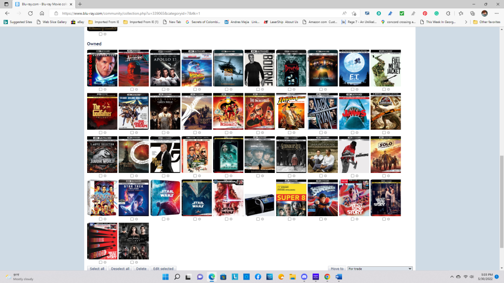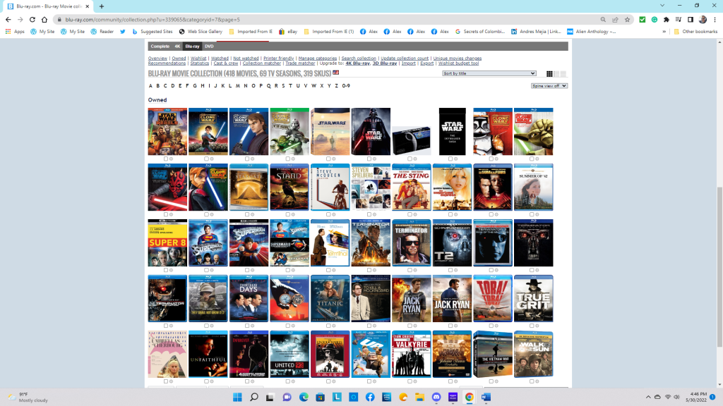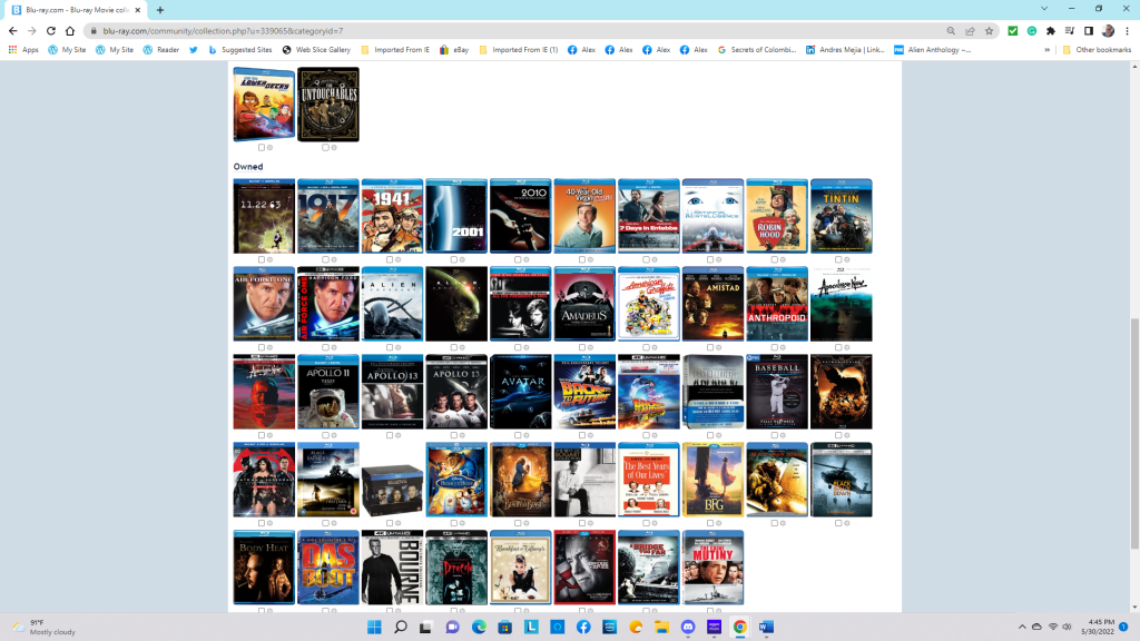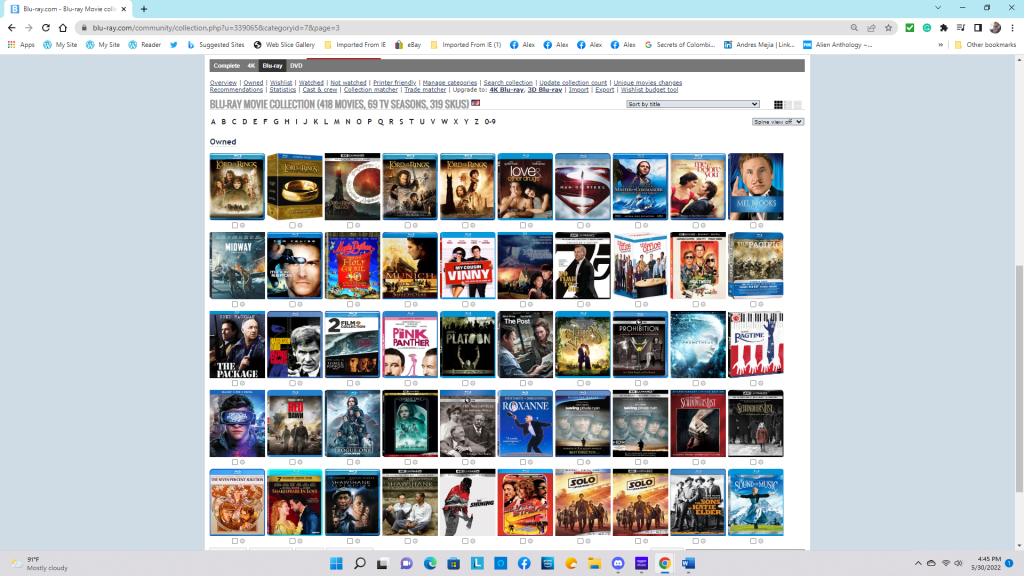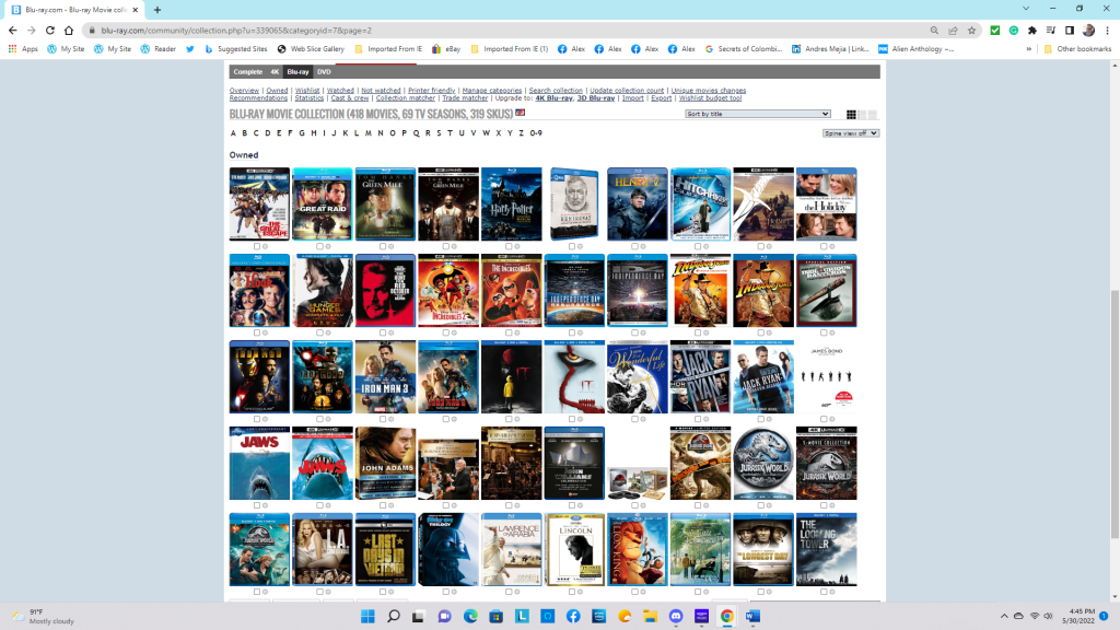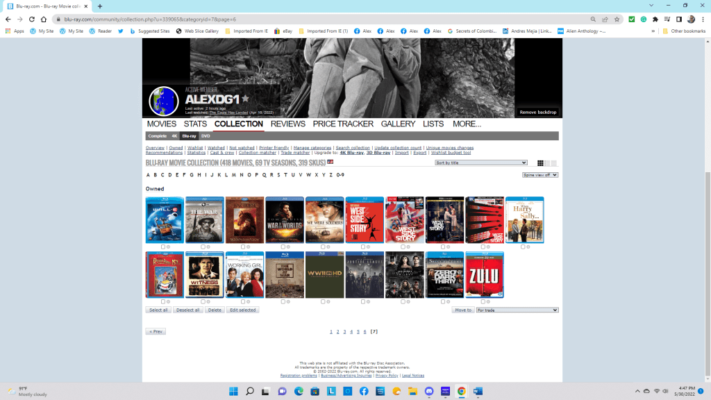 As of today, according to my Collection page in my Blu-ray.com profile, my collection consists of: