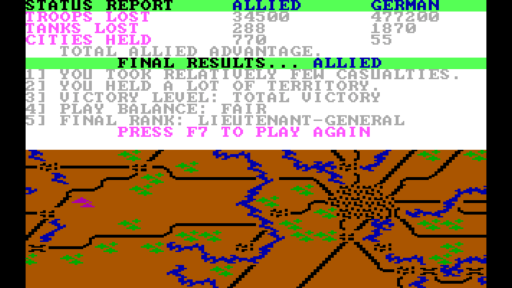 Since I played the game frequently for about 10 years on my Apple IIe PC, I remembered that I learned to exploit a fatal weakness in the German forces’ ability to defend a certain target type from tactical air wings to end that scenario far earlier than the August 25, 1944 end date. So, I drew on that experience and ended the Normandy campaign way ahead of schedule.