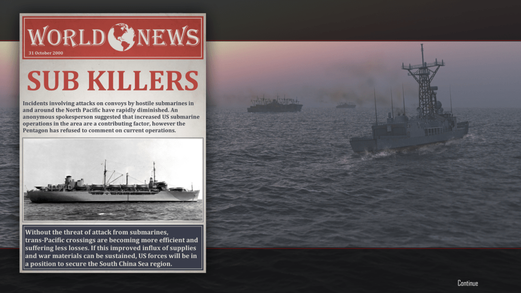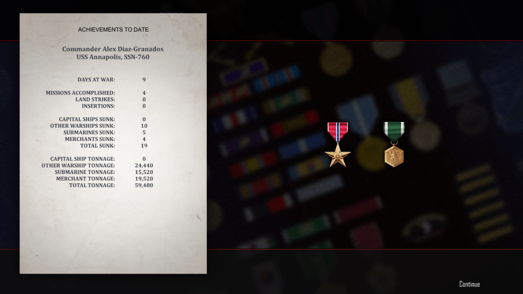 So far, USS Annapolis has had a better war career than the more advanced – and pricey – USS Seawolf, and I earned several commendations and decorations as her skipper. That having been said, I’ll take a hiatus from Cold Waters for a while so that the next time I resume the South China Sea 2000 campaign, I don’t lose my boat because I was in a rush to get through a mission or because my brain is tired and I make a bad decision because of that.