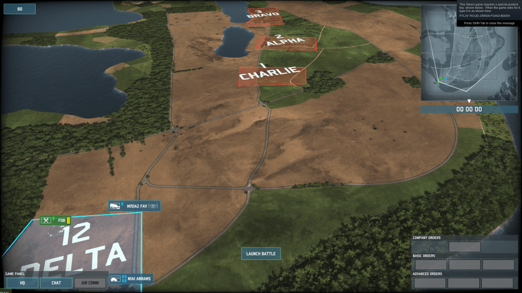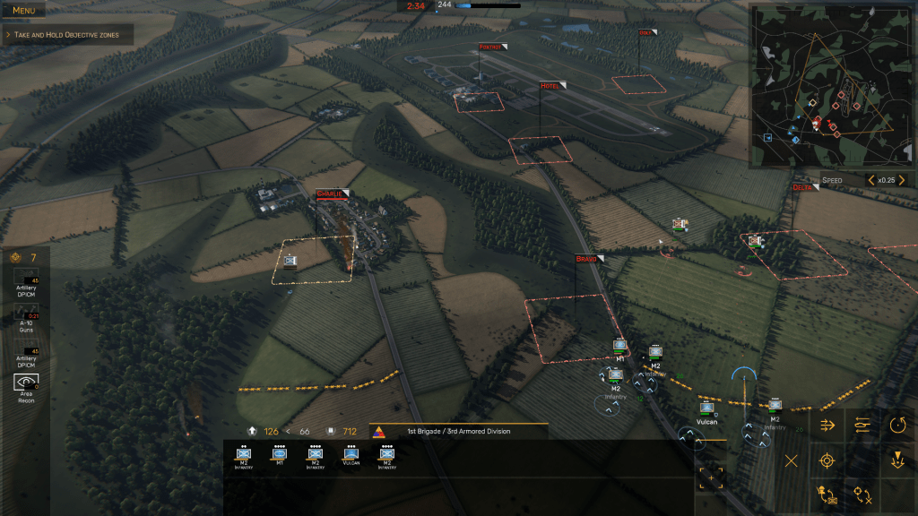 Here’s a screengrab from one of the tutorials in Wargame: AirLand Battle. Note the Objective Zones labeled with NATO phonetic alphabet code names. (C) 2013 Eugen Systems
