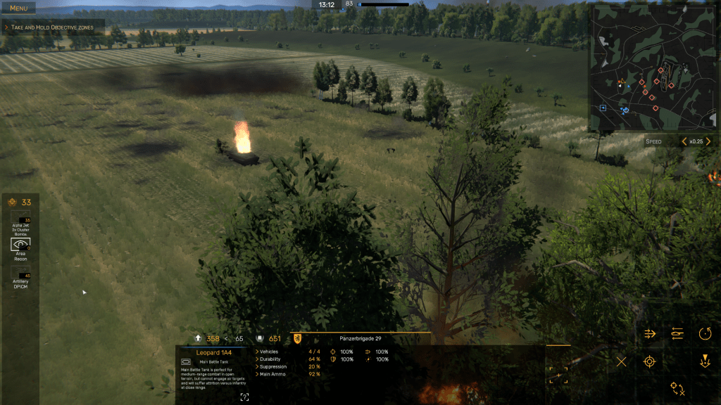 Released last Tuesday via Steam and other digital game distributors, Regiments is a one-player wargame where you, the player, can lead units from either the Western NATO alliance or the Soviet-dominated Warsaw Pact in a fight to the death in West Germany. I have not played the Operations – which I believe are the “Campaign” missions in Regiments – so I don’t have the war’s fictional background and can’t tell you the Soviets’ motivations to go to war. Suffice it to say that It’s the summer of 1989, something went horribly wrong on the way to the peace dividend, and the balloon went up in West Germany.