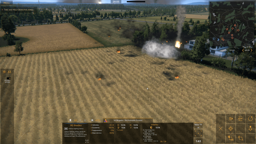 I haven’t had the time to write a review of Regiments, but I do think it needs to have some tweaks, such as giving players at least one complete battalion task force already constituted rather than the Wargame-like piecemeal deployment process that Bird’s Eye Games went for here. Don’t get me wrong; I know it took a lot of time to create the game, but I think the Wargame/Steel Division vibe is not realistic. If I may make an analogy with classic MicroProse games, it’s like starting a game of M1 Tank Platoon with only two tanks, a Bradley CFV, and waiting till you have “deployment points” to “earn” the rest of your combat team. So… this setup might be fine for fans of Wargame, but it doesn’t work for me. I do like the graphics, and I kinda/sorta like the UI, but I still think that making Regiments with features reminiscent of Wargame: AirLand Battle, was not the way to go.