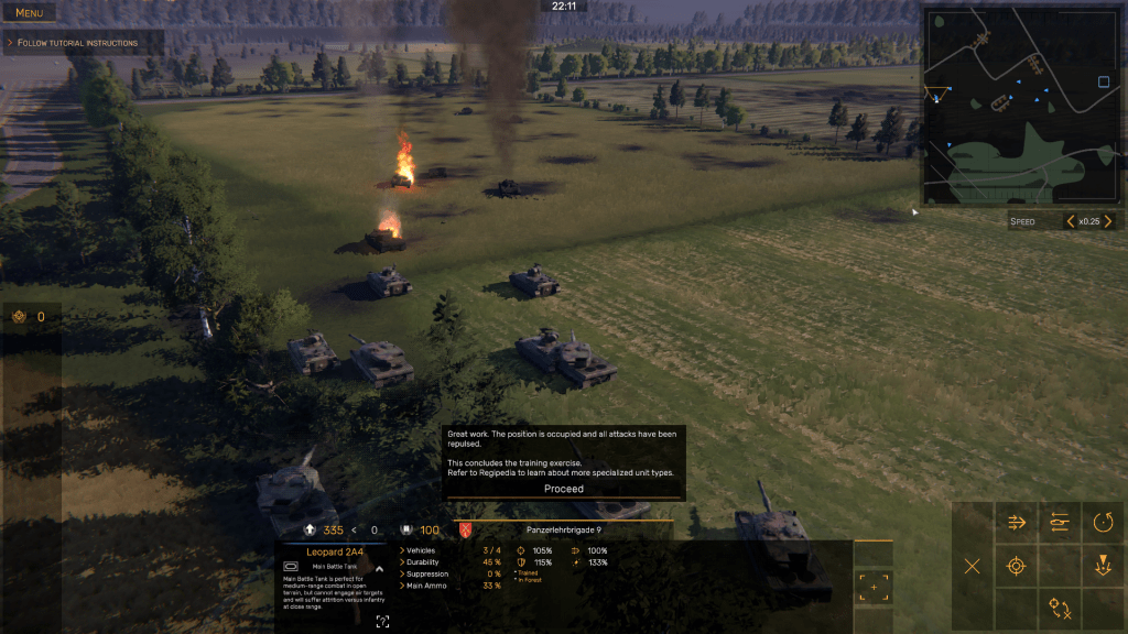 The game’s biggest challenge, of course, is how to properly deploy – and employ all these units either in defensive or offensive missions. Not every resource is always available, and not every unit can move at the same speed or has the same capabilities as the others. The trick in Regiments is to know the pros and cons of each unit and its hardware, its weapons, and how to effectively use terrain, mobility, armor protection, and firepower to achieve victory on the battlefield.