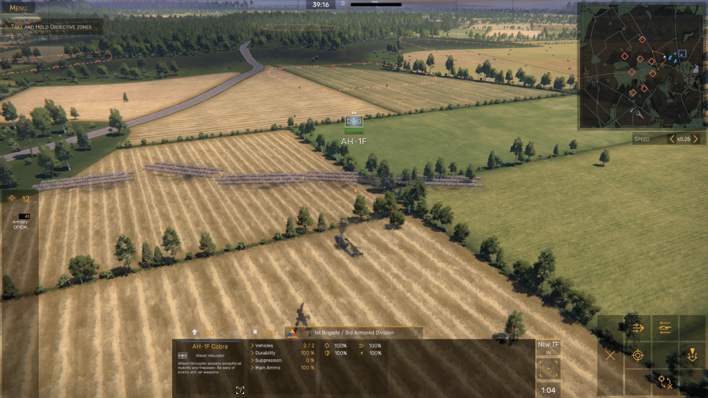 - Choose Task Forces that give you air support or artillery TacAids. I prefer those that allow you to call in several types of A-10 air strikes, although the ones that give Artillery support from Division Artillery do come in handy. If you choose the NATO unit 1st Brigade/U.S. 3rd Armored Division, use your DPs to acquire the Task Force – call sign “Rattlesnake” – with the OH-58D Kiowa scout helicopter and its deadly counterpart, the AH-64A Apache gunship