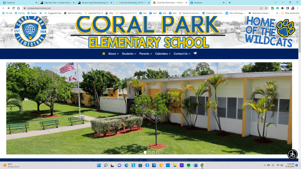 In the brief time that I attended Coral Park – I was only there from late August/early September (I forgot when, exactly, the 1972-1973 school year began.) until Friday, November 10, 1972 – I struggled both academically and, to a lesser degree, emotionally because as a recent returnee to the States after living for nearly six years in Bogota, Colombia, I only spoke un poquito de ingles. I had trouble doing both in-class work and homework, partly because of the language barrier, but mostly because Coral Park Elementary School, which which was 12 years old at the time, did not have a Special Education department for kids with disabilities. As a result, my grades were not as good as they might have been otherwise, and although I was not conscious of that at the time, it affected my emotional health.