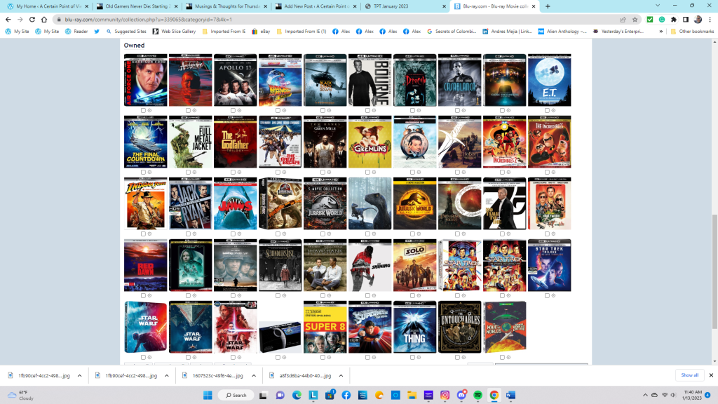 The arrival of this two-disc set (1 4K UHD Blu-ray, 1 “regular” Blu-ray) of Groundhog Day means that I now own 105 4K UHD titles (including a few repeats due to purchases of backup sets of The Skywalker Saga and updated box sets of franchise films such as Star Trek and the Jurassic Park/Jurassic World series. The tally does not include The Fabelmans, even though I have it on my Blu-ray.com Collection page in the Ordered category.