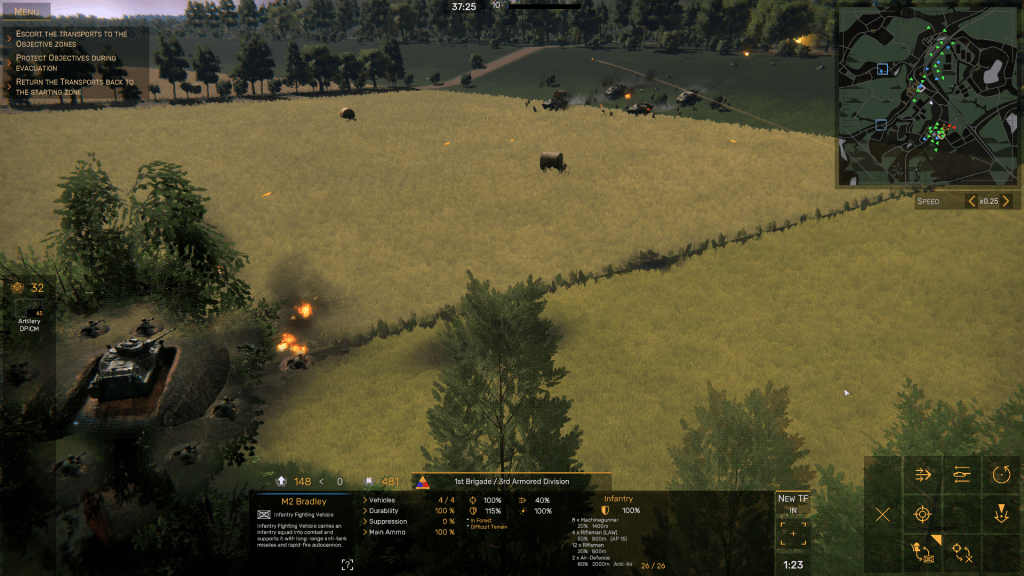 I think I’ll play a few more Mobile Defense skirmishes while commanding other NATO units, then increase the difficulty level to Medium.