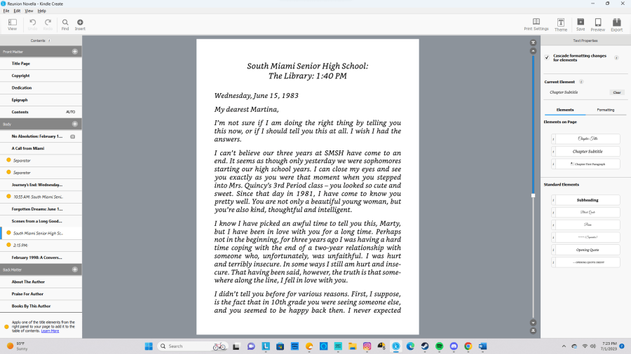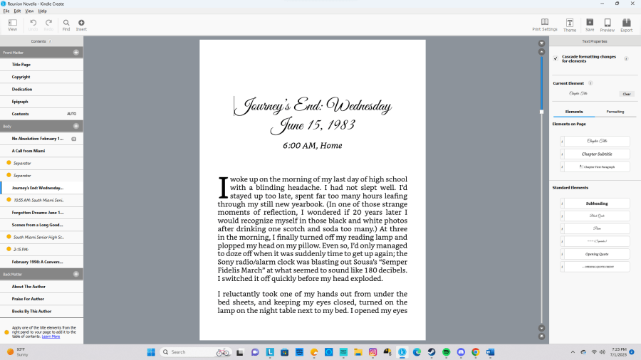 See, even though I knew that Monday’s revisions would not start appearing on the Kindle e-book until, at the earliest, today, I figured that the ones I made over what would have been the “regular” weekend (Friday night through Sunday night) would be visible by yesterday afternoon, depending on what time Amazon’s system listed them as Live. So, I turned on my seldom-used Kindle Fire tablet (one of the last electronic devices I bought when I still lived in Miami) and checked Reunion there.