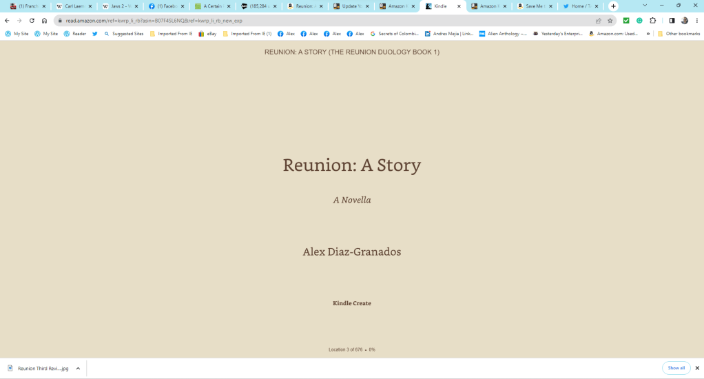 As you know, I had hoped that when Wednesday’s batch of corrections to Reunion: A Story went live, I’d put this chapter in my writing career in the rear mirror of life. The novella is not that long – the “story” part is only 55 pages long (which is why I can’t issue a hardcover edition; it’s too short for that format to be commercially viable, according to Kindle Direct Publishing). Surely, after 25 years between the rough draft and the third edition, I’d have caught all the typos, spelling, and grammar “bloopers,” and formatting mistakes, no?