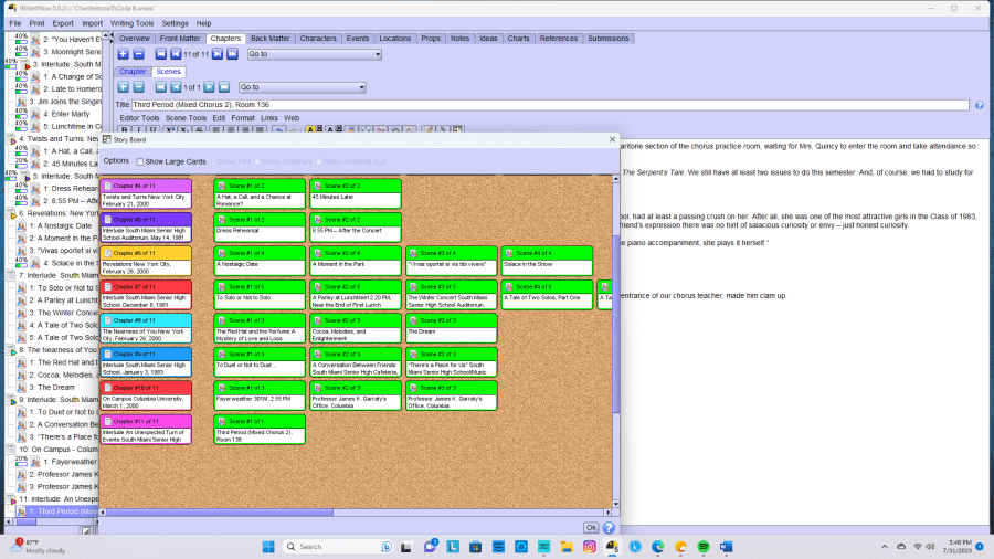 I also like to listen to music when I write. Quite often, I tend to think of my stories in cinematic terms, so I often try to imagine what the score would sound like if they were ever adapted into feature films. I did this when I wrote a 40-page “novel” for my ninth-grade English class back in 1980; I did it again when I worked on Reunion in the summer of 1998. I reluctantly went back to my original Word file and changed the song to something I made up while I listened to the Theme from Summer of ’42.