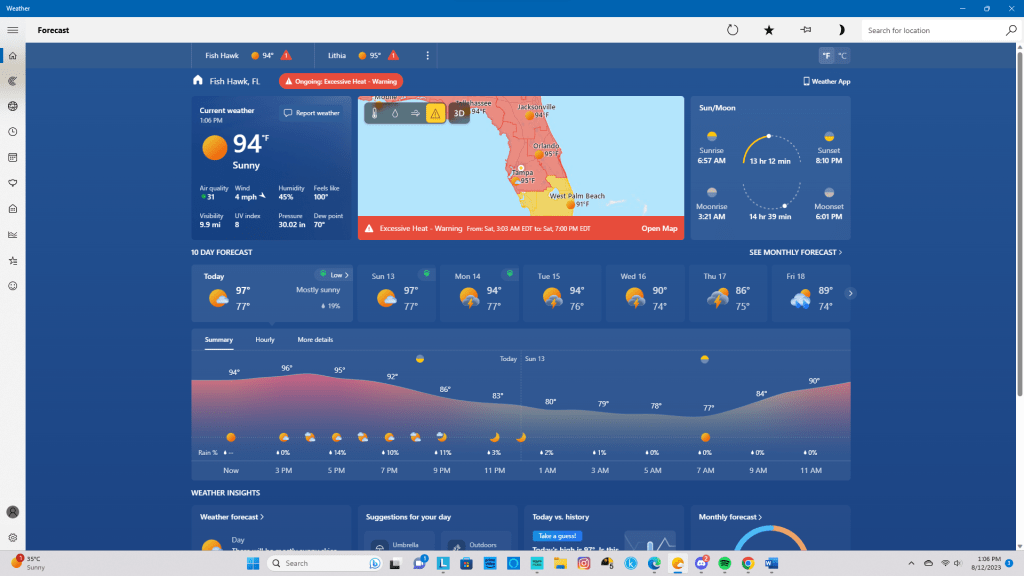 Late Morning/Early Afternoon, Saturday, August 12, 2023, Lithia, Florida