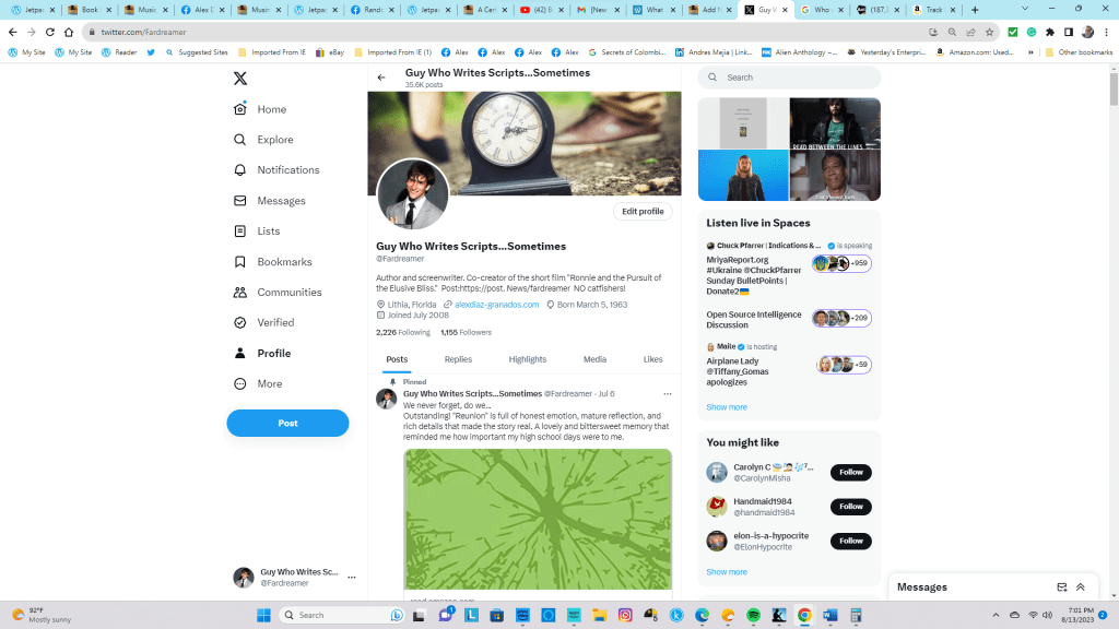 My Twitter handle is Guy Who Writes Scripts…Sometimes, so this lady from New Jersey asked me how I was faring with the strike. I explained that I am not a full-time screenwriter or a Writers Guild of America member, so I’m not directly involved in the strike. I did tell her, without getting into detail, about my friend Juan Carlos Hernandez and how I sometimes collaborate with him and his wife Adria on short films.