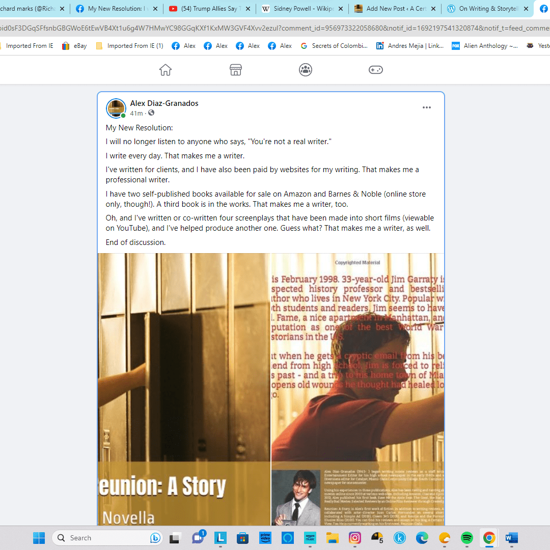 As you know, there are some people who, for one reason or another, have a simplistic, narrow, and indeed shallow idea of what, exactly, makes a person a writer. Iโ€™ve been told, on at least one occasion (and perhaps even more) that even though I have two blogs (my original censored-by-Trump supporters one on Blogger, A Certain Point of View, and this one), have written for various websites (and gotten paid for it), worked for several clients (and again got paid for it), have at least five film writing or co-writing credits, and have written and self-published two books (and Iโ€™m working on a third one!), I am, in their opinion, not a real writer.
