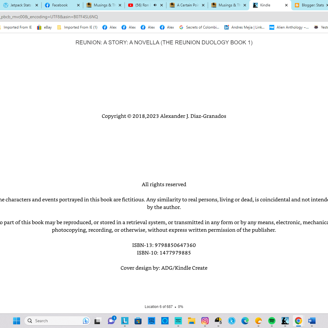 4. I shared the original draft of Reunion (my novella) way back in the late 1990s with a few people, and they all said, “Man, this is good. Why don’t you try getting it published?” Well, I had a hardcover of the Writer’s Digest Writer’s Market reference book, but even though it had handy advice on how to navigate the process of finding a literary agent, then pitching your manuscript to the various publishers, writing query letters or pitch letters…it was too overwhelming. So…I literally kept the Word file I made in 1998 and just transferred it from PC to PC till 2018, when I decided to “do something with it” and self-publish it via Amazon. Five years and several revised editions later, I’m working on a follow-up novel.