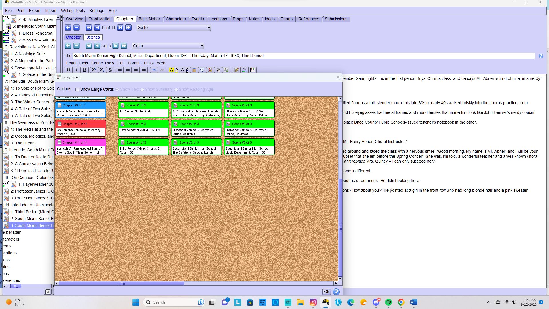 4 responses to “Musings & Thoughts for Wednesday, September 13, 2023, or: Reaching a Writing Milestone, and Grappling with Chapter 11…Still!”