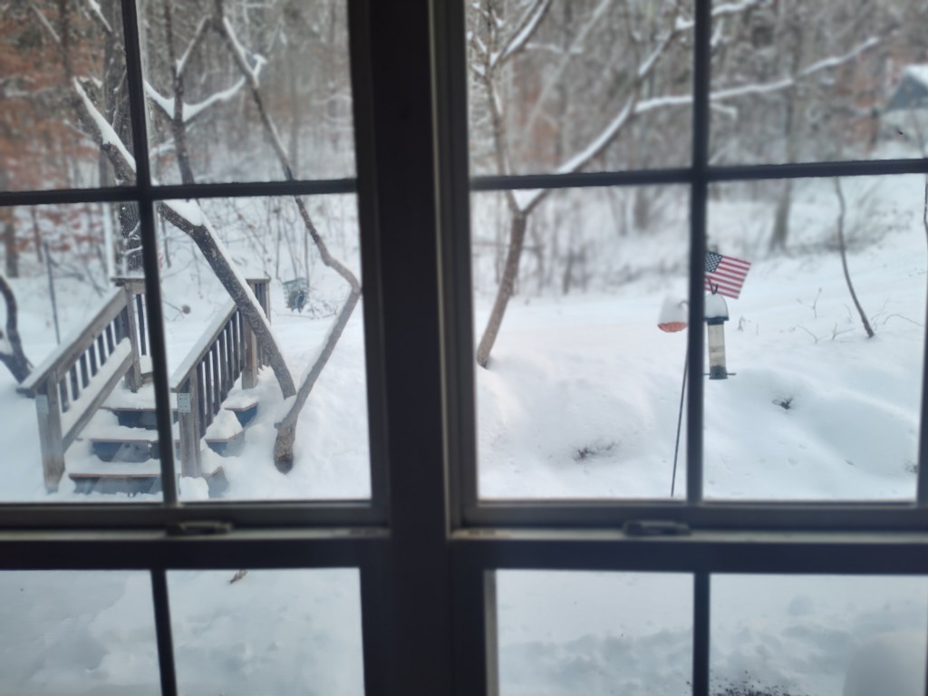 Hi, folks, and welcome to another edition of A Certain Point of View, Too. It’s a gray, chilly, and sometimes snowy day here in my corner of Madison. Currently, the temperature is 22°F (-5°C) under cloudy skies. With the wind blowing from the north-northeast at 1 MPH (2 KMH) and humidity at 81%, the feels-like temperature is 32°F (0°C). The forecast for today calls for occasional light snowfalls, mostly in the late afternoon and early evening, and the high will be 29°F (-2°C). Tonight, we can expect a scattered mix of rain and snow showers. The low will be 22°F (-5°C)