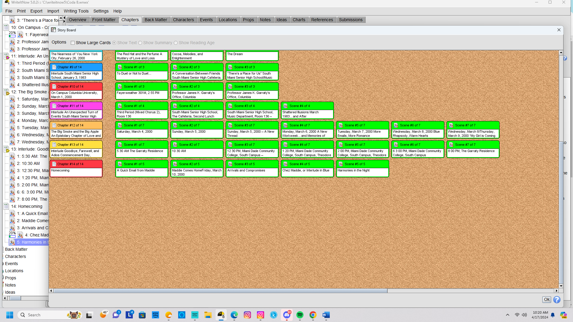 I do plan on working on the manuscript, even though I’ll start later than I’d like. I don’t know if I’ll be up to starting Chapter 15 today; whenever I finish a chapter, regardless of its length, I usually can’t keep the momentum and move on to the next chapter easily. I might have done that a few times when I began Reunion: Coda in March of last year, but I don’t think I’ve been able to pick up the narrative after reaching a chapter’s endpoint.