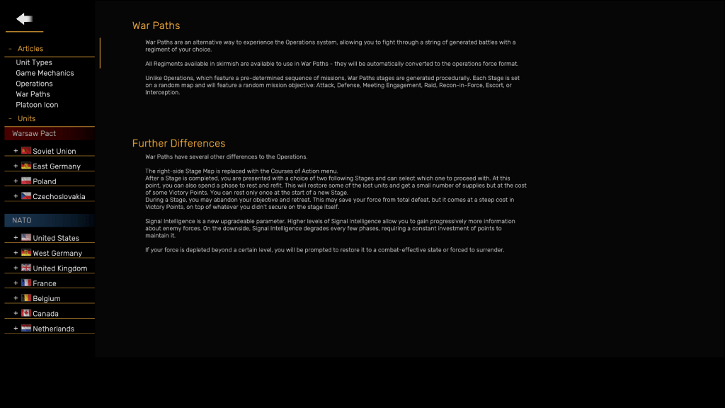 Personally, I never warmed to the original Operations mode, preferring instead to engage in Skirmishes. However, last night, restless and sleepless, I ventured into a War Paths campaign with a task force from the U.S. 3rd Armored Division operating in NATO’s CENTAG realm.