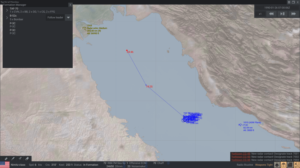 Now, even though I acknowledge that Sea Power is a game and not a true-to-life simulation (even though the folks at Triassic Games take great pains to make it look authentic, both in the way the ships and planes look, as well as the use of real U.S. Navy/NATO NTDS symbols on the tactical display screens), there is one “mod” that irks me for its many inaccuracies.